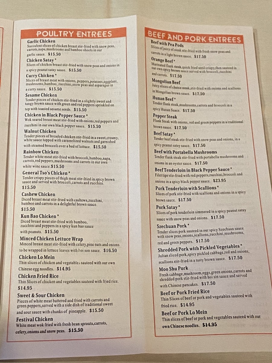 flank steak battered and deep-fried to crisp then stir-fried in our orange sauce with broccoli, carrots, and zucchini