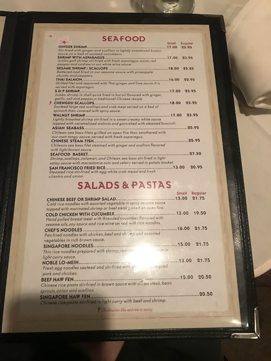 sauteed large sea scallops and crab meat served on a bed of spinach then covered with spicy chengdu sauce